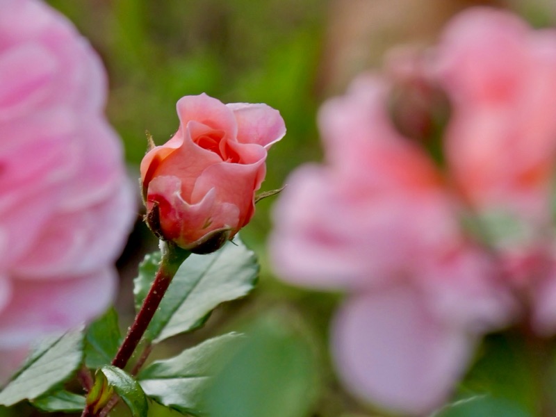 Today, I noticed that my roses near the road were blooming. I meant to go right back out to take some pictures, but just remembered that I wanted to take some when I realized it was time to blog. So here is one of the buds and some others blooming in the background.