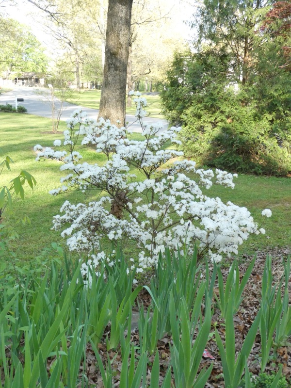 I mentioned this azalea bush last night and I said that I would take a photo today…well…I didn't think about taking that photo till just now when I opened up the blog app. So I decided to go hunt for one I took another year. I know that the above photo is later in April than it is now…a lot greener than it is now. And, I was right. This was taken on April 22, 2022. But, you can get an idea of this bush…just covered with white blooms.