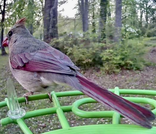Well, it has ended up pretty good with this capture with my bird feeder cam. I have been notified many times during the day that the camera has captured “something." Some times a bird was captured but other times he had flown away before the camera shutter opened and closed. Most of the time with the cardinals, they are too close to the camera and I just get a blur. The birds must be coming in for a bedtime snack as the camera has been going off a lot…so far this cardinal, a chickadee, and a sparrow of one type or another.